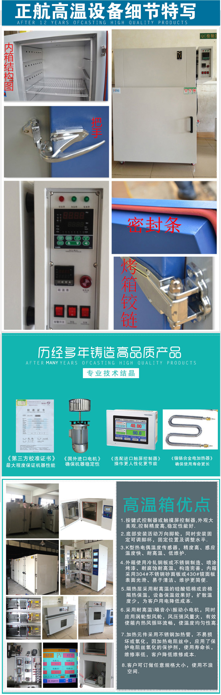 | 產(chǎn)品用途:高溫干燥箱是供科研單位、大專院校、醫(yī)療機(jī)構(gòu)、工礦企業(yè)等單位、部門作各種試驗(yàn)之用,如干燥、消毒、滅菌、固化等應(yīng)用 | |
