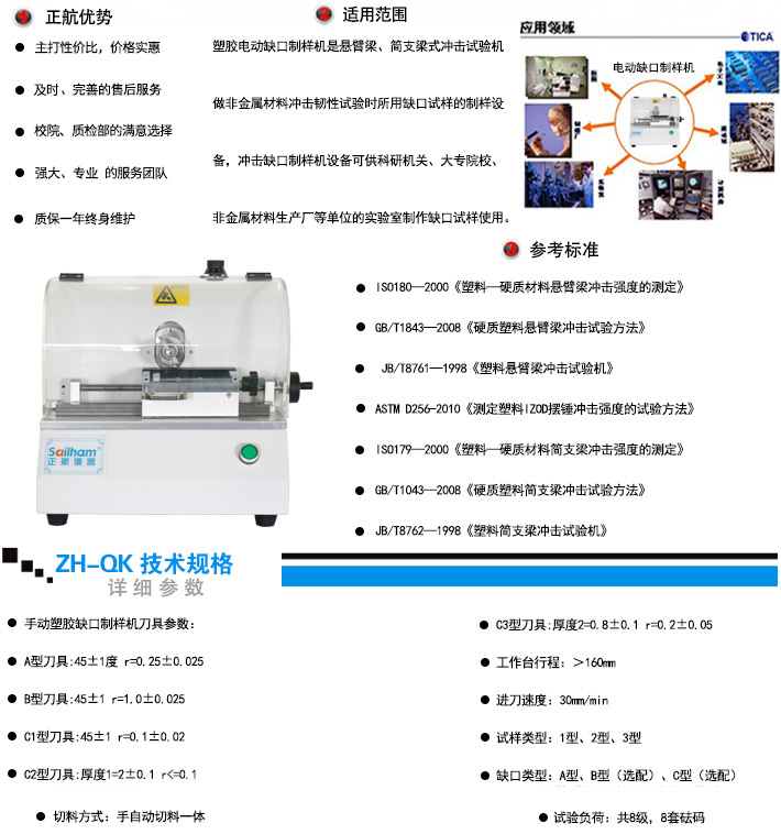 | 產(chǎn)品用途:塑膠電動缺口制樣機是懸臂梁、簡支梁式?jīng)_擊試驗機做非金屬材料沖擊韌性試驗時所用缺口試樣的制樣設(shè)備,沖擊缺口制樣機設(shè)備可供科研機關(guān)、大專院校、非金屬材料生產(chǎn)廠等單位的實驗室制作缺口試樣使用。 | |
